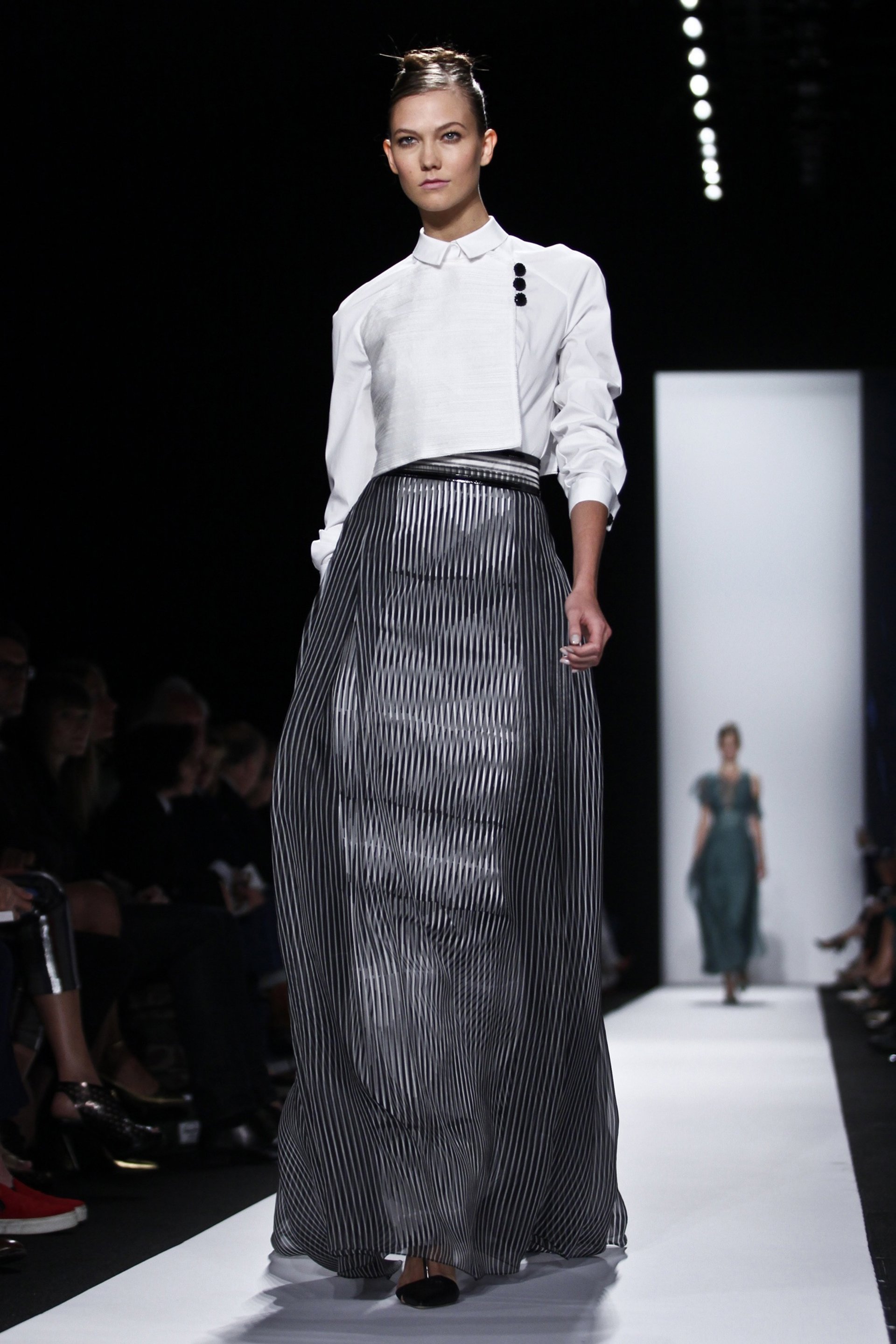 New York, 9 de septiembre de 2013.- Carolina Herrera ha presentado hoy su colección Primavera-Verano 2014 en la Semana de la Moda de Nueva York. Inspirada por el movimiento artístico Cinético y los artistas venezolanos Carlos Cruz-Diez y Jesús Rafael Soto, Carolina Herrera explora los efectos ópticos del movimiento y la percepción ocular aplicándolos con sutileza a materiales y siluetas. Lo hace superponiendo capas con motivos geométricos en diferentes telas que van desde la organza al chiffon y el raso, adornado con piedras preciosas y aplicaciones. Las prendas en movimiento crean una experiencia virtual, multidimensional para el espectador.