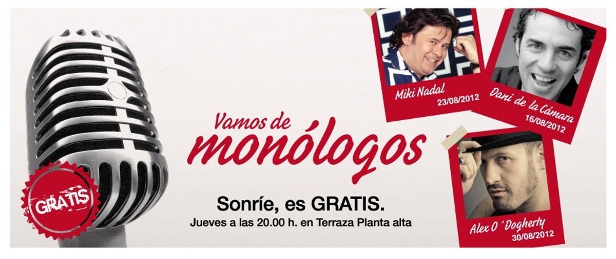 A partir de las 20'30 h, comenzarán las actuaciones gratuitas en la terraza exterior de La Vaguada, con monologuistas tan conocidos como Dani de la Cámara (Paramount Comedy, El Club de la Comedia) el 16 de agosto, el televisivo Miki Nadal (El Informal, Sé lo que hicisteis) el 23 de agosto y Álex O'Dogherty (Camera Café, Doctor Mateo) el 30 de agosto.