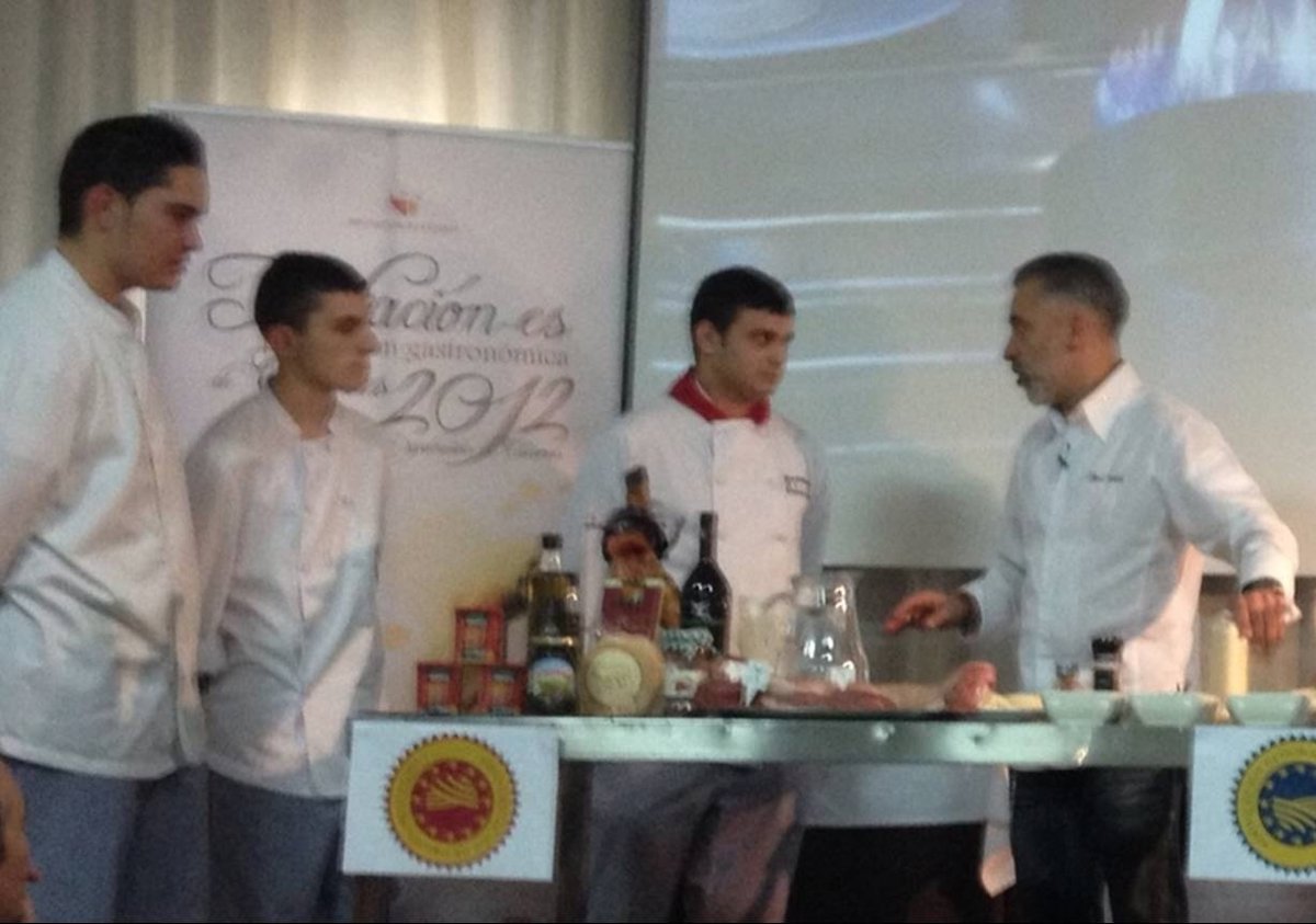 El cocinero internacional Sergi Arola fue el encargado de presidir un concurso de tapas protagonizado por jóvenes promesas de la cocina extremeña, cuatro chefs que fueron seleccionados entre los más de cien futuros cocineros que se presentaron al certamen, y que participaron con la ayuda de otra decena de jóvenes talentos procedentes de las escuelas de hostelería de las comarcas cacereñas.
