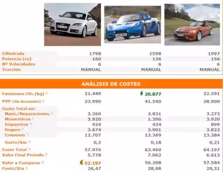 Con solo indicar los kilómetros anuales aproximados que tiene previsto recorrer, la web ayuda al visitante a elegir aquellos coches que cumplan con los criterios que busca. El sistema además muestra un completo informe de cada coche a comparar, apareciendo en pantalla hasta tres modelos para una comparativa simultánea.