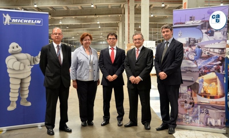 En la imagen: De izquierda a derecha: Fernando Tamames, Director de Compras Michelin; Carolina Martínez, Responsable Almacén Seseña Michelin; Gaxan Castaños, Director General Groupe CAT Logística Cargo; Jose Carlos Pérez de Eulate, Director Financiero Michelin España y Portugal; Antonio Pérez, Director de Operaciones Logísticas Groupe CAT Península Ibérica.