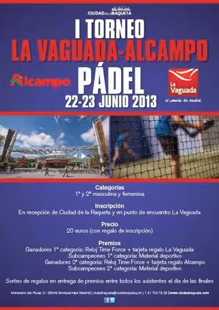 El centro comercial La Vaguada convoca el I Torneo de pádel La Vaguada-Alcampo que se celebrará este sábado 22 y domingo 23 de junio en Ciudad de La Raqueta Montecarmelo.