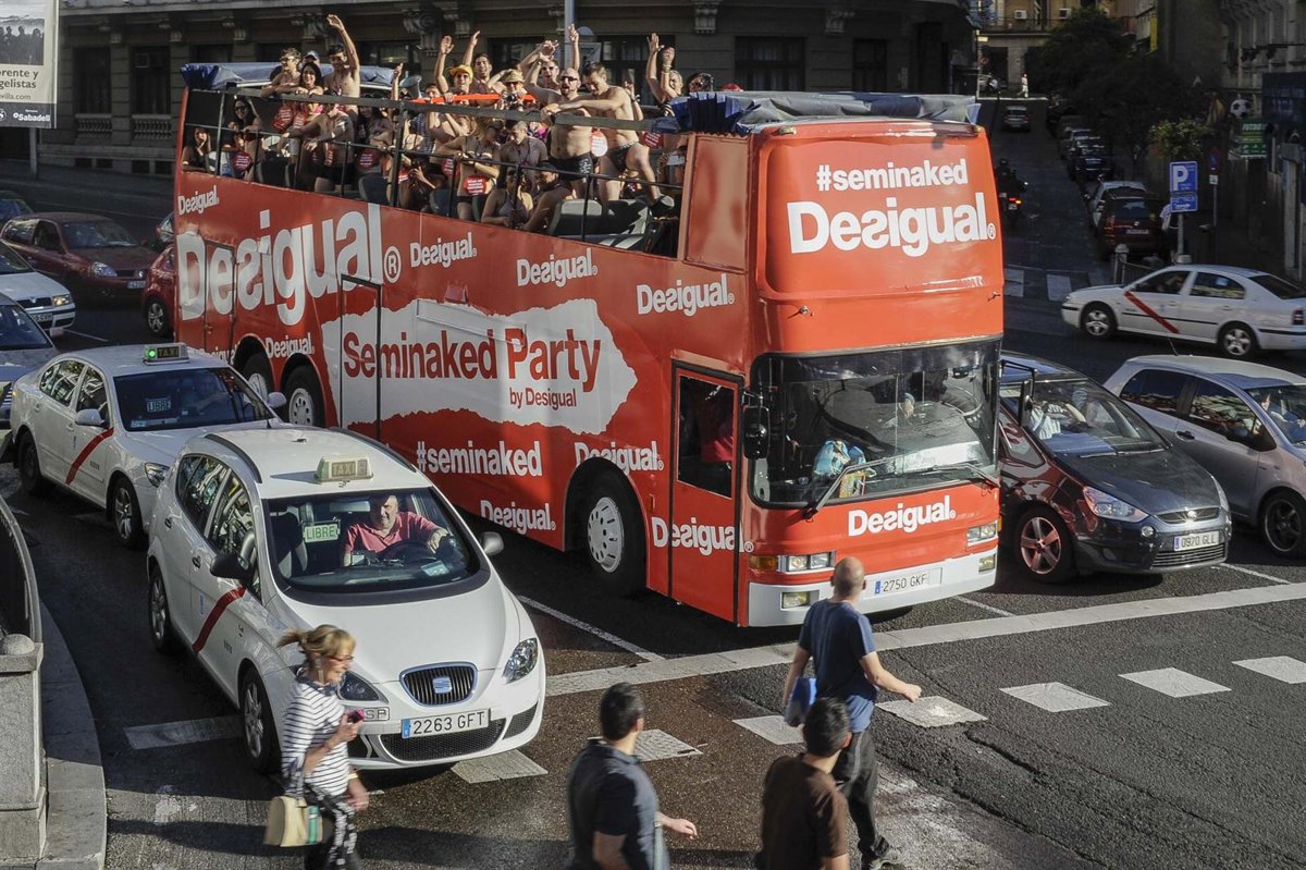 Desigual vuelve a dar la bienvenida a las rebajas dejando en ropa interior a más de 100 personas en Madrid, para regalarles un look completo de la marca. En esta ocasión, los afortunados recorrieron las calles de la capital semidesnudos en unos SEXY BUSES DESIGUAL, al ritmo de la mejor música. Y sólo bajaron de ellos para entrar en la tienda Desigual más grande del mundo, en la calle Preciados 25, a elegir sus prendas favoritas.