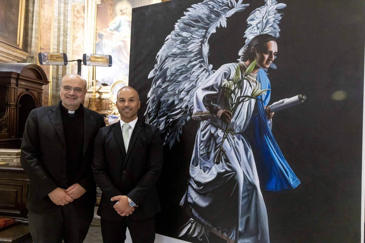 Impulsada con el apoyo institucional de SNAM, el patrocinio de la Región del Lacio y el respaldo económico de Capillas Señoriales, la muestra —abierta hasta el 6 de enero de 2026— presenta tres obras monumentales realizadas con la técnica tradicional del claroscuro: San Miguel Arcángel, San Gabriel Arcángel y María Dolorosa. Tres imágenes poderosas de 2m x 1,80m que, entre la luz y la sombra, conducen al espectador por un camino de fe, contemplación y belleza.