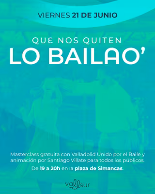· El día 21 de junio tendrá lugar un gran evento de baile en la Plaza de Simancas de Vallsur, dirigido por la Asociación ‘Valladolid Unido por el Baile’