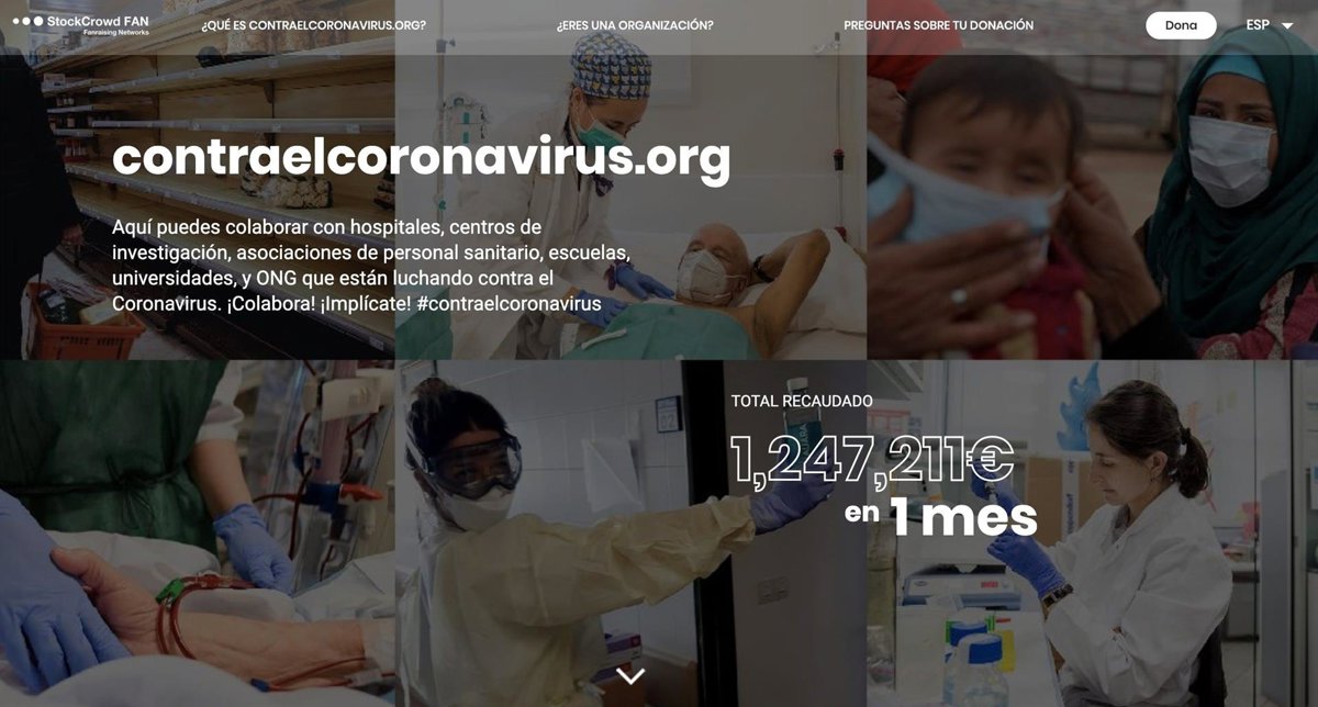 Montamos contraelcoronavirus.org en poco menos de 48 horas para que las organizaciones pudieran recaudar fondos contra el pandemia. La respuesta ha sido extraordinaria, muchas organizacionesse han sumado a esta iniciativa y los donantes se han multiplicado., afirma Sergi Pallars, CEO de StockCrowd Technologies, que comenta que han tenido que replicar esta iniciativa en inglés y portugués, debido a la avalancha de solicitudes.