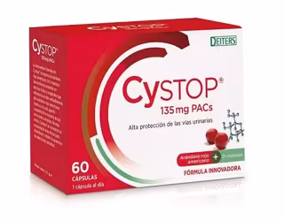 La combinación del extracto de arándano rojo americano y el componente D-manosa, convierte a Cystop en una fórmula innovadora con doble acción y más eficaz, tanto en la prevención de la cistitis como en la reducción de las molestias urinarias. Cystop evita de forma contundente que la bacteria Escherichia coli se adhiera a las paredes del tracto urinario, y logra una máxima protección y una mayor eficacia para combatir las molestias urinarias.