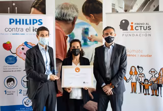Philips tiene la mejora del diagnóstico y tratamiento del ictus como uno de sus pilares estratégicos en materia de salud. Aun así, nuestra prioridad real es evitar que se produzcan y la buena noticia es que el 90% de los ictus son evitables. Por este motivo Philips ha formado a todos sus empleados en España bajo la iniciativa Freno al ictus, con el objetivo de ayudar a reducir su altísima incidencia en nuestro país (1 de cada 6 personas tendrán un ictus) y sus nefastas consecuencias (primera causa de discapacidad adquirida y segunda causa de mortalidad), ha apuntado Luis Cuevas durante el acto de entrega.