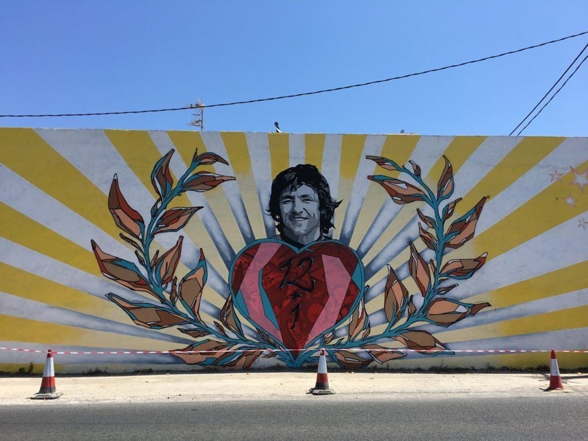 El sitio exacto del accidente fue el elegido para plasmar el recuerdo, era el sitio natural para la obra. Una pared de 25 x 5 metros es el soporte de la obra en la que Necko ha plasmado no sólo su recuerdo como deportista si no como persona cercana y querida en la isla.