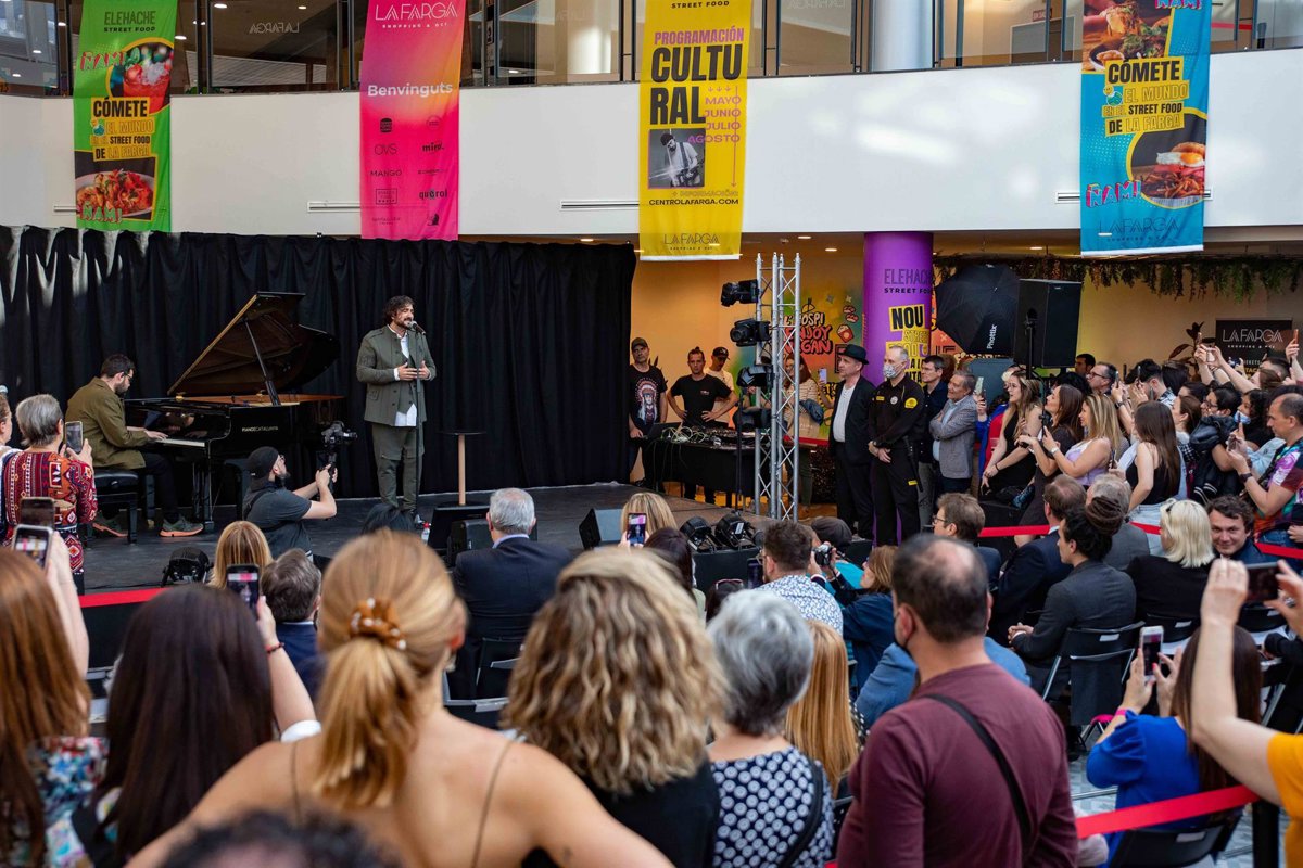 El cantante Antonio Orozco fue el centro de la celebración, interpretando a piano dos de sus más populares temas. Fue una actuación íntima y especial para los afortunados que pudieron asistir al evento, con aforo limitado, en un ambiente festivo y bajo el nuevo lucernario de La Farga, que aporta luminosidad a este histórico centro comercial de LHospitalet.