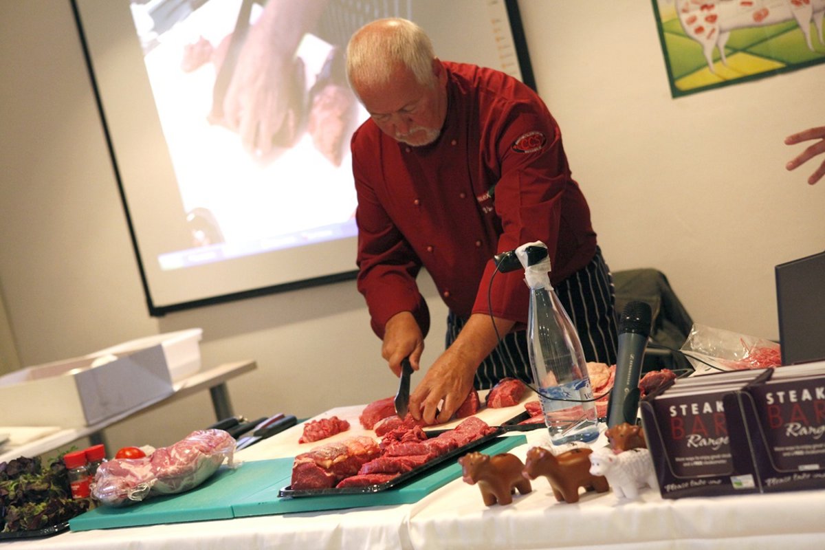 La demostración de carnicería realizada por el consultor Viv Harvey, tuvo como objetivo mostrar de qué manera aportar valor a las diversas piezas de carne, partiendo de cuatro típicos cortes primarios de vacuno y ovino, que tradicionalmente se utilizan para usos concretos y limitados como asar o cortar en filetes de diverso grosor.