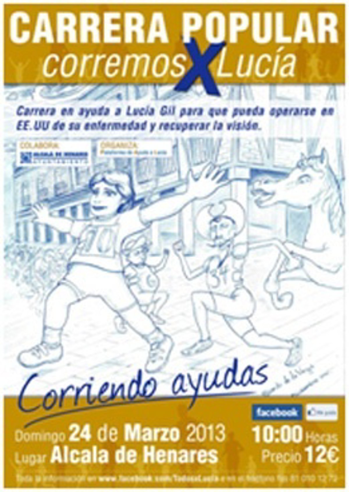 Kilómetros y dorsales plagados de solidaridad. Esa será la imagen que recorrerá las calles de Alcalá de Henares el próximo domingo 24 de marzo a las 10,00 de la mañana. Y es que, gracias al tesón de unos padres que se han propuesto recuperar la visión de su hija Lucia Gil de seis años, la cual padece una rara enfermedad, las calles de municipio madrileño serán testigos de una carrera muy especial. "Hemos organizado este acto deportivo, junto a la empresa Atelier Time y la colaboración del Ayuntamiento de la localidad, con el noble de fin de ayudar a Lucia y a sus padres a recaudar los fondos necesarios para que su pequeña pueda acudir por segunda vez una clínica especializadas de Filadelfia (Estados Unidos), lugar en el tras la intervención recuperá su visión. La estancia de la familia y la operación cuesta cerca de 60.000 euros", dice José Martínez, miembro de la plataforma de "Ayuda a Lucía".