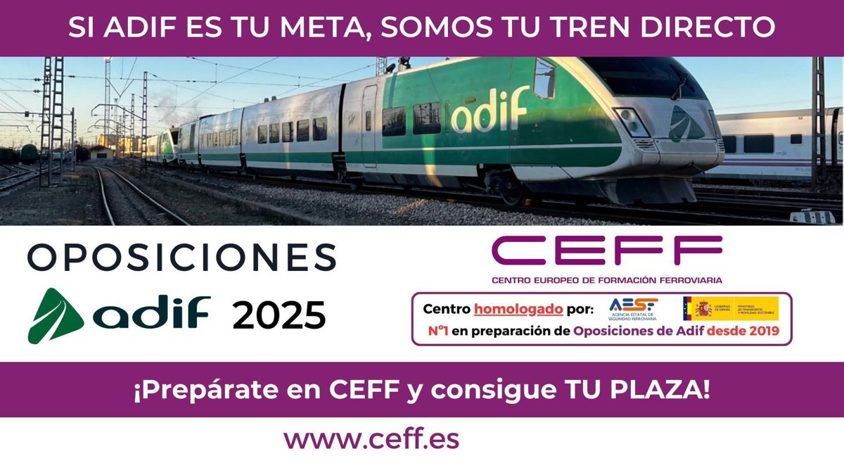El Centro Europeo de Formación Ferroviaria (CEFF), líder en formación ferroviaria desde 2008, se posiciona como un aliado clave para aquellos que buscan asegurar su futuro en el sector ferroviario y lograr una plaza en las oposiciones de Adif en 2025.