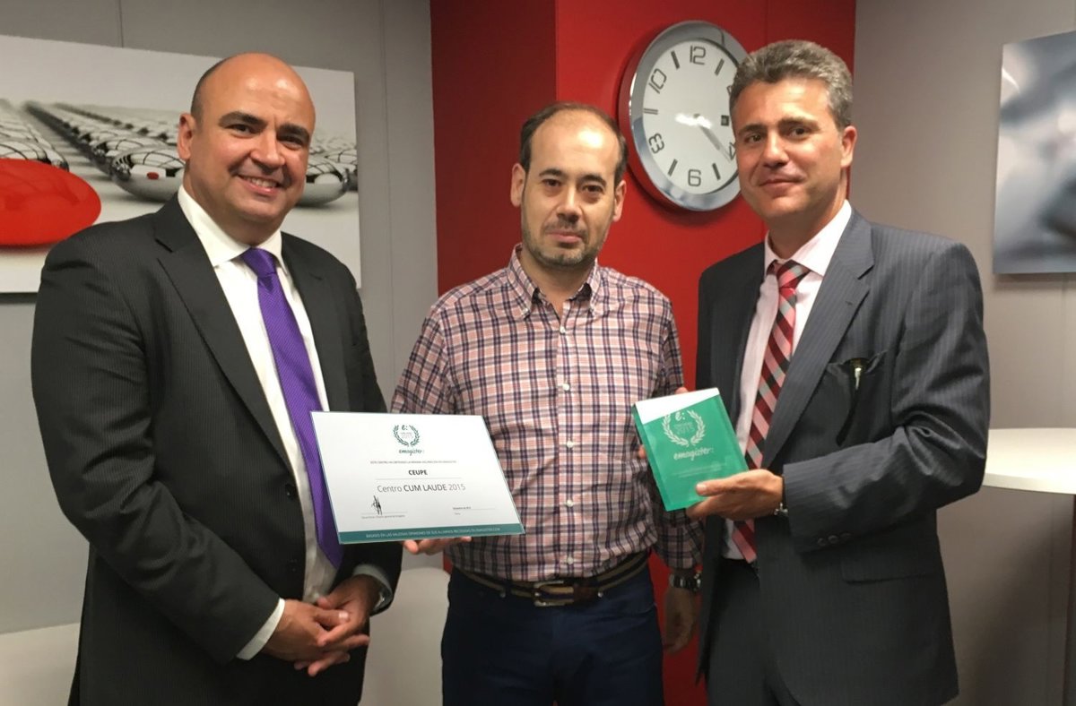 Francisco Lamamie de Clairac y Gonzalo Zapero, máximos responsables de CEUPE han recogido el Sello Cum Laude que confirma el prestigio de CEUPE dentro del mundo de la formación. Este galardón concede la excelencia académica y credibilidad del Centro de Formación, puesto que un requisito para su obtención es tener un alto número de valoraciones positivas por parte de alumnos y de exalumnos. Este sello es otorgado por Emagister Internacional, portal online de formación con cientos de centros de formación registrados en todo el mundo.