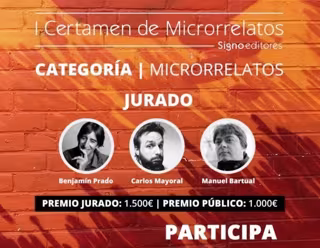 Signo editores organiza el I Certamen de Microrrelatos, un concurso dividido en tres categorías, todas centradas en el formato breve: microrrelato (máximo 1200 caracteres), el disparador (aforismos de máximo 150 caracteres) y tuit-historia (un relato a través de Twitter con no más de 15 tuits).