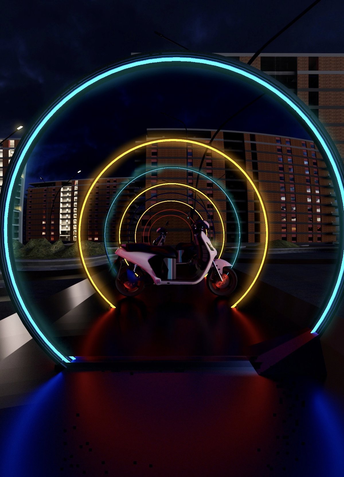 Su proyecto colectivo, denominado 'Velocidad y Control', nace de un análisis profundo de las sensaciones que se generan a partir de la velocidad. Con esta instalación, sus autoras pretenden provocar una experiencia de adrenalina, mezcla de emoción, placer y energía: buscan simular la unión de un juego entre la ciencia ficción -evocación lejana de la carrera de motos de Tron- y la nostalgia de las atracciones de siempre. La interacción con los usuarios se produce bajo un efecto de espejos reflectores confrontados (con un efecto espía no totalmente opaco) que genera la ilusión de un túnel infinito de luz mediante una superposición de grandes anillas. Se crea una secuencia de círculos con una iluminación led programada y limitada por dos grandes espejos circulares que todavía aumenta más la sensación de huida. En este vertiginoso túnel visual quedan enmarcadas dos motocicletas eléctricas Yamaha que las personas visitantes podrán utilizar para atravesar virtualmente esta estructura de fuga e incorporar su propia imagen a la experiencia visual. Cabe destacar que es accesible en todo su perímetro, con un flujo multidireccional.
