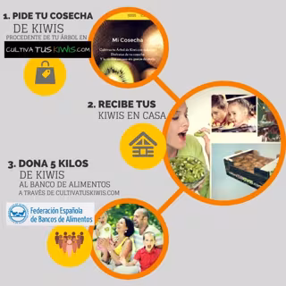 Solidario porque al comprar kiwis online el cliente realiza, a través de la Federación de Bancos de Alimentos de España, una donación de 5 kilos de kiwis dirigido a los más necesitados.