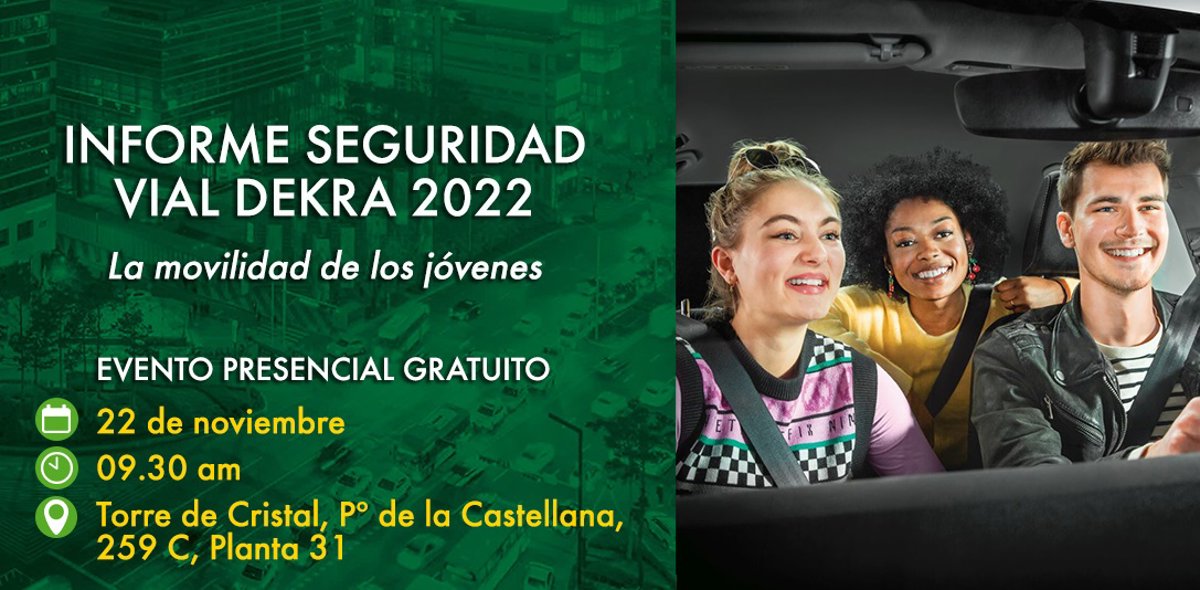La presentación del Informe de DEKRA: un evento de referencia en el sector de la seguridad vial Organismos e instituciones de referencia en materia de Seguridad Vial se darán cita en el evento que se celebrará en Madrid el próximo 22 de noviembre en la Torre de Cristal en Madrid, con el objetivo de presentar su más reciente informe centrado esta vez, en la movilidad de los jóvenes.