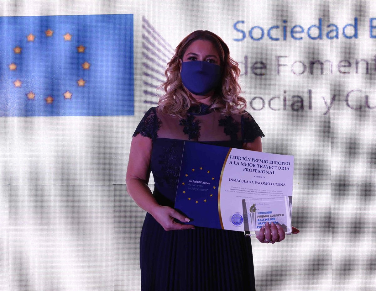 La delegada técnica de Grupo Index, Inmaculada Palomo, ha recibido el Premio a la Mejor Trayectoria Empresarial que ha otorgado la Sociedad Europea de Fomento Social y Cultural, celebrado en el Hotel The Westin Palace de Madrid.