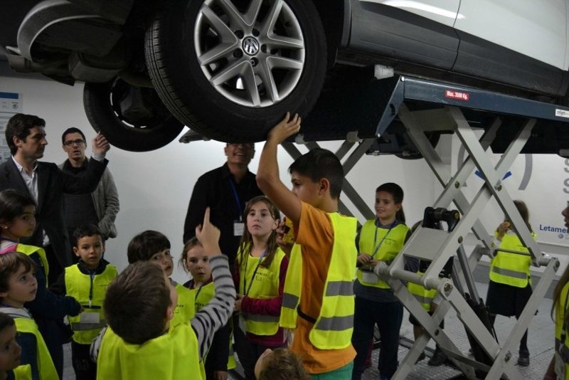 De la mano de los profesionales del taller, los pequeños realizaron una visita guiada por los 5.000m2 del taller, donde descubrieron como son las entrañas de un coche por dentro y por debajo.