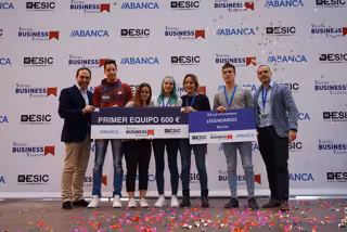 Madrid, 5 de abril de 2019.- Los alumnos del IES Luis Manzanares de Murcia se han alzado con el título de mejores empresarios virtuales de España, tras conseguir vencer a los más de 300 estudiantes que se han dado cita en La Nave de Madrid para competir en la octava final nacional de Young Business Talents, el programa educativo de simulación empresarial organizado por ABANCA, ESIC Business and Marketing School y Praxis MMT.