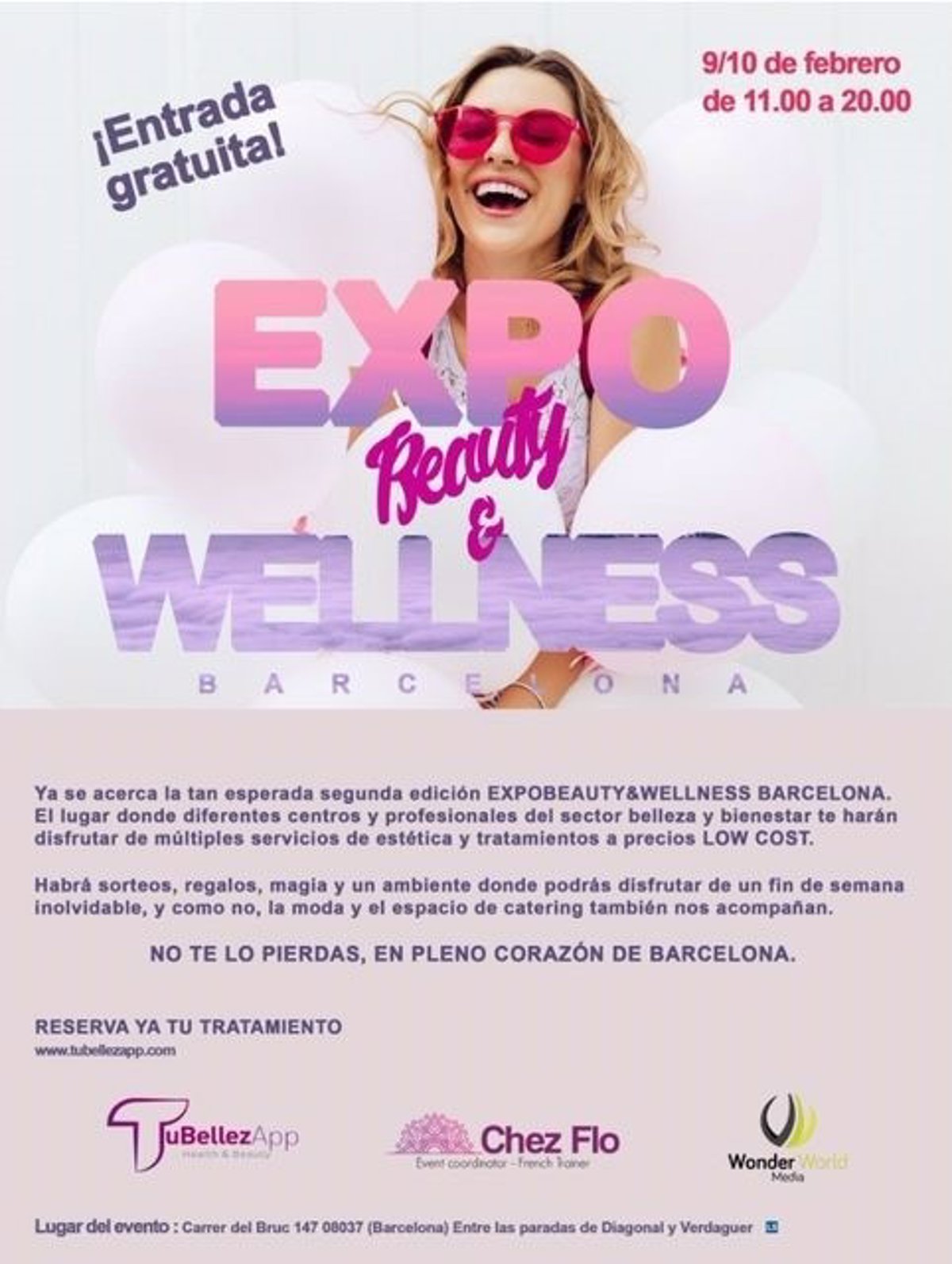 Se acerca un fin de semana completo y lleno de sorpresas para todos los amantes de las últimas tendencias en belleza y bienestar. Tubellezapp&Chez Flo http://tubellezapp.com abrirán las puertas al gran público a las 11h de la mañana el próximo sábado día 9 de febrero donde los interesados podrán acceder de forma gratuita y disfrutar de múltiples servicios in situ a precio de feria. Tubellezapp.com, la nueva plataforma de reservas de tratamientos de belleza on line, que se está convirtiendo en una experiencia favorita para gran parte de los consumidores de este tipo de servicios, también ofrecerá importantes descuentos, tarjetas VIP para los primeros solicitantes, sorteos del productos exclusivos etc