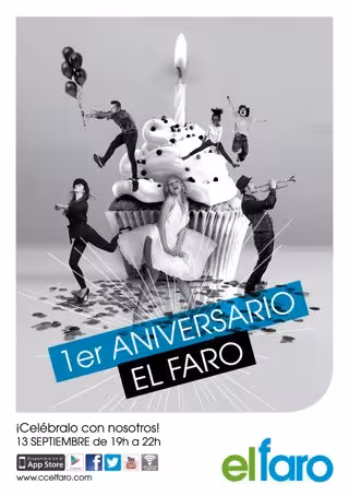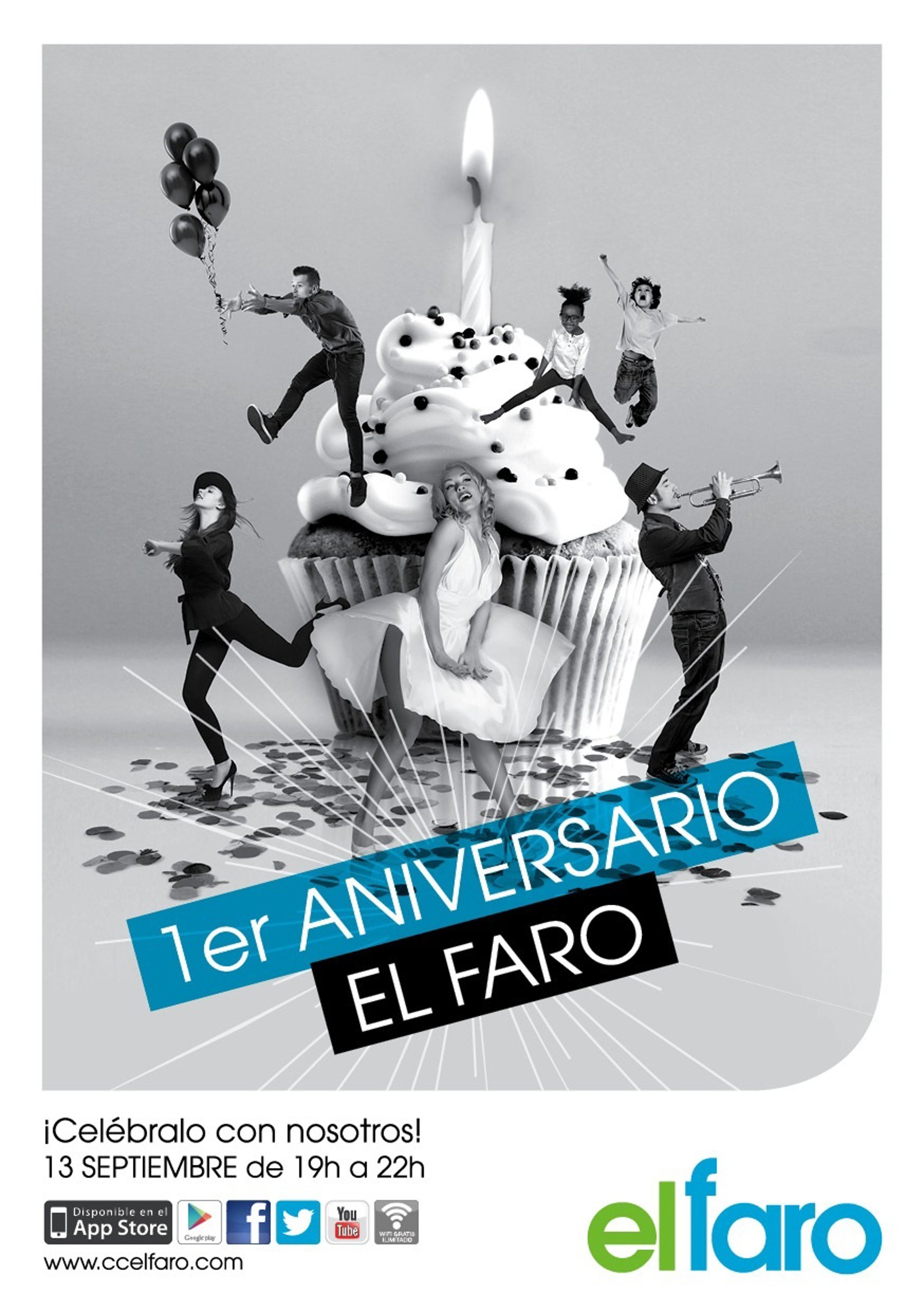 El centro comercial El Faro celebra el próximo viernes 13 de 19:00 h a 22:00 h su primer aniversario con espectáculos y divertidas sorpresas. Con una decoración por todo lo alto, el centro comercial acogerá diversos "pasacalles" con payasos imitadores y personajes del antiguo Hollywood con los que los clientes podrán hacerse fotos en los diversos photocall que se prepararán para la ocasión.