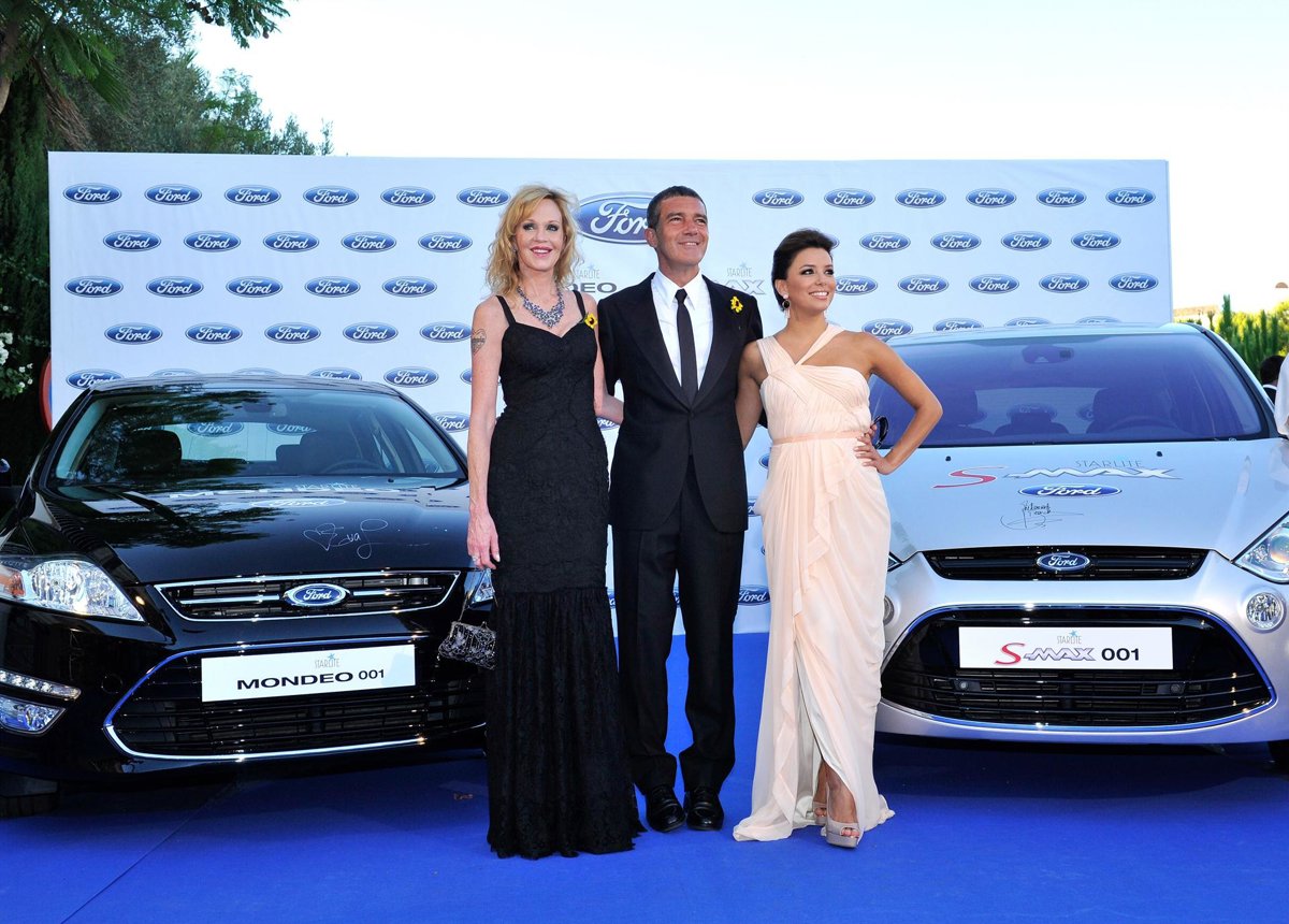En su papel de coche oficial de este exclusivo evento solidario, Ford España ha hecho entrega a los actores de los primeros modelos de dos ediciones especiales de Mondeo y S-MAX diseñados para la ocasión, que han sido firmados por los actores y serán subastados en el transcurso de la gala. Eva Longoria ha recibido el S-Max Titanium Powershift 2.0 TDCi 140cv, un modelo familiar lleno de dinamismo en un elegante color plata perla, mientras que para Antonio Banderas la marca automovilística ha reservado un Mondeo Berlina Titanium Econetic 1,6 tdci 115CV. Disfrutando del ambiente distendido durante el acto de entrega de los coches, los actores han decido intercambiarse los modelos en los que estampar su firma.