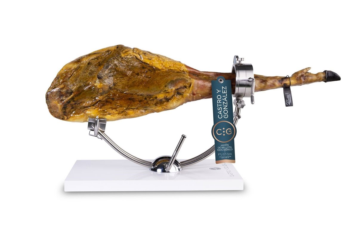 "En Castro y González nos basamos en la tradición para alcanzar la innovación. Apostamos por el I+D, sobre todo en el ámbito de la curación del jamón. Y fruto de nuestras investigaciones nació el Jamón Fusión. El primer lanzamiento lo hicimos con la añada 2015 de un jamón 75% ibérico que se curó en la Sierra de Huelva y en Guijuelo. Hoy os presentamos la evolución de ese primer proyecto: el jamón Fusión 100% Bellota 2018".