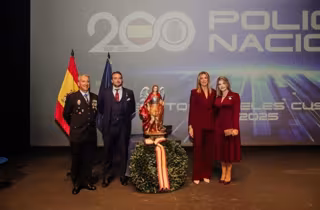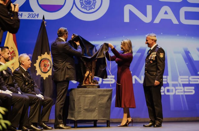 Uno de los momentos más destacados de la jornada fue la inauguración de una escultura del Ángel de la Guarda, donada por Francisco de Borbón y su esposa, Sophie de Borbón-Károly, como muestra de gratitud y apoyo a la labor de la Policía Nacional. La estatua fue presentada durante la ceremonia en el Teatro Mira y permanecerá en la comisaría local como símbolo de protección y homenaje duradero al servicio de los agentes.