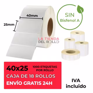 Rollos Etiquetas Térmicas Adhesivas 40x25 18ud sin bisfenol A. - La Tienda del Rollo