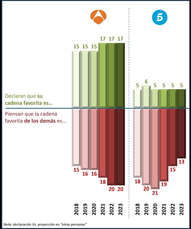 Fue en 2022 cuando Antena 3, por primera vez, supera a Telecinco como la cadena preferida por los demás.