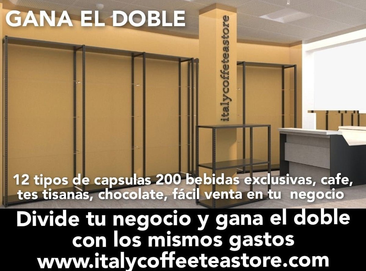 Para los negocios, tiendas en general, bares, comercios, empresas, no importa el tipo de negocio, Italy Coffee Tea Store propone que sin aumentar los gastos se doble el beneficio fácilmente dedicando parte del espacio que ya tiene el negocio y sin aumentar personal, la multinacional www.italycoffeeteastore.com lo facilita todo con garantía, capsulas y granel de café, té, tisanas, chocolate, solubles sanos y deliciosos, bebidas que todos toman cada día de 4 a 10 veces, caliente o frío, corto o largo