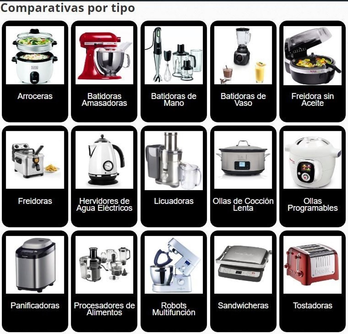 Un total de más de 200 electrodomésticos de cocina que han sido exhaustivamente analizados y comparados entre sí por los profesionales de Kualuzz y que son presentados en forma de reviews, para que se pueda escoger el que mejor se adapta a las necesidades culinarias y presupuesto.