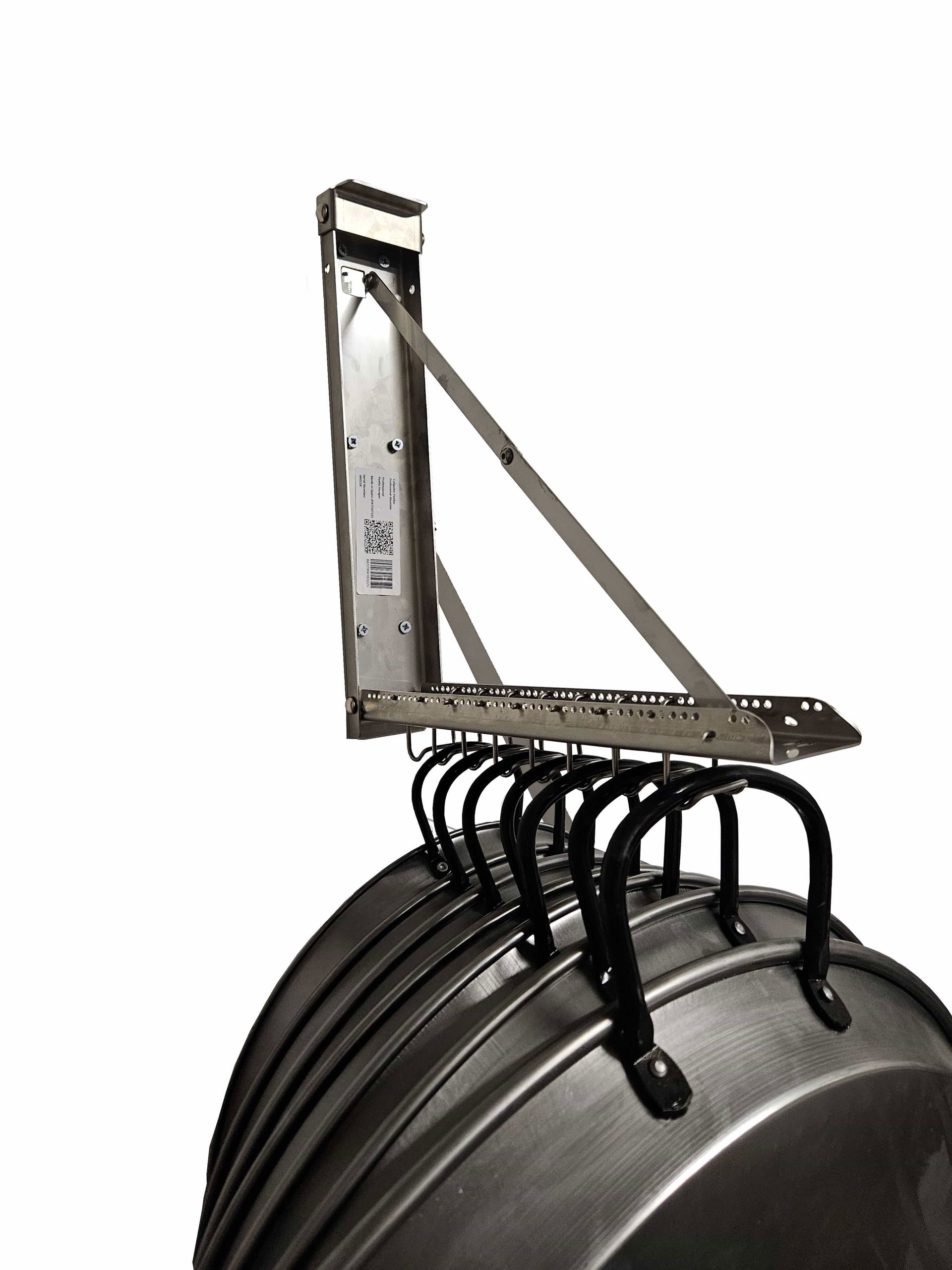 • Ahorro de espacio: El colgador es capaz de plegar hasta 8 paelleras, una dentro de otra, optimizando al máximo el espacio de almacenamiento.