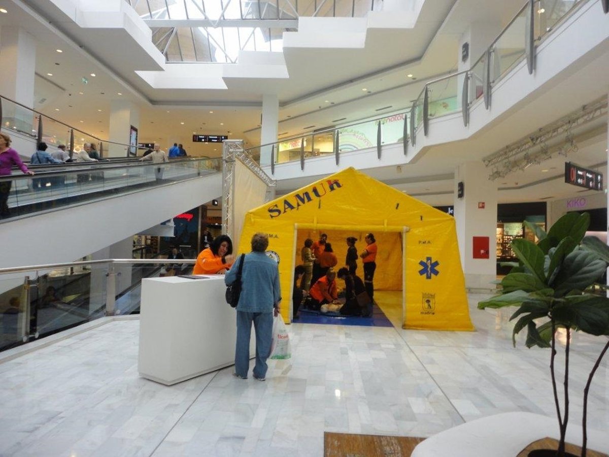 El centro comercial madrileño fue uno de los 21 puntos de la ciudad en los que técnicos del Samur dieron cursos de formación a más de 8.500 madrileños con el objetivo de enseñar a reaccionar y atender a una víctima que ha sufrido un paro cardíaco. Cerca de 400.000 personas al año sufren un paro cardíaco repentino fuera del hospital y la supervivencia de muchas víctimas depende de un masaje cardíaco eficaz y una desfibrilación precoz en los tres o cuatro minutos posteriores al suceso.