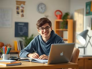 Un alumno sonríe mientras estudia. - Mundo Posgrado