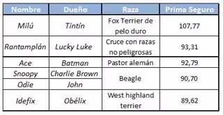 · El precio del seguro de Rantamplán, Ace, Snoopy y Odie se sitúa entre los 90 y los 93 euros de media.