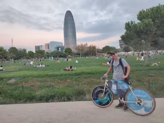 Varón posa con bicicleta patrocinada por Oceancoll. - Cityflow