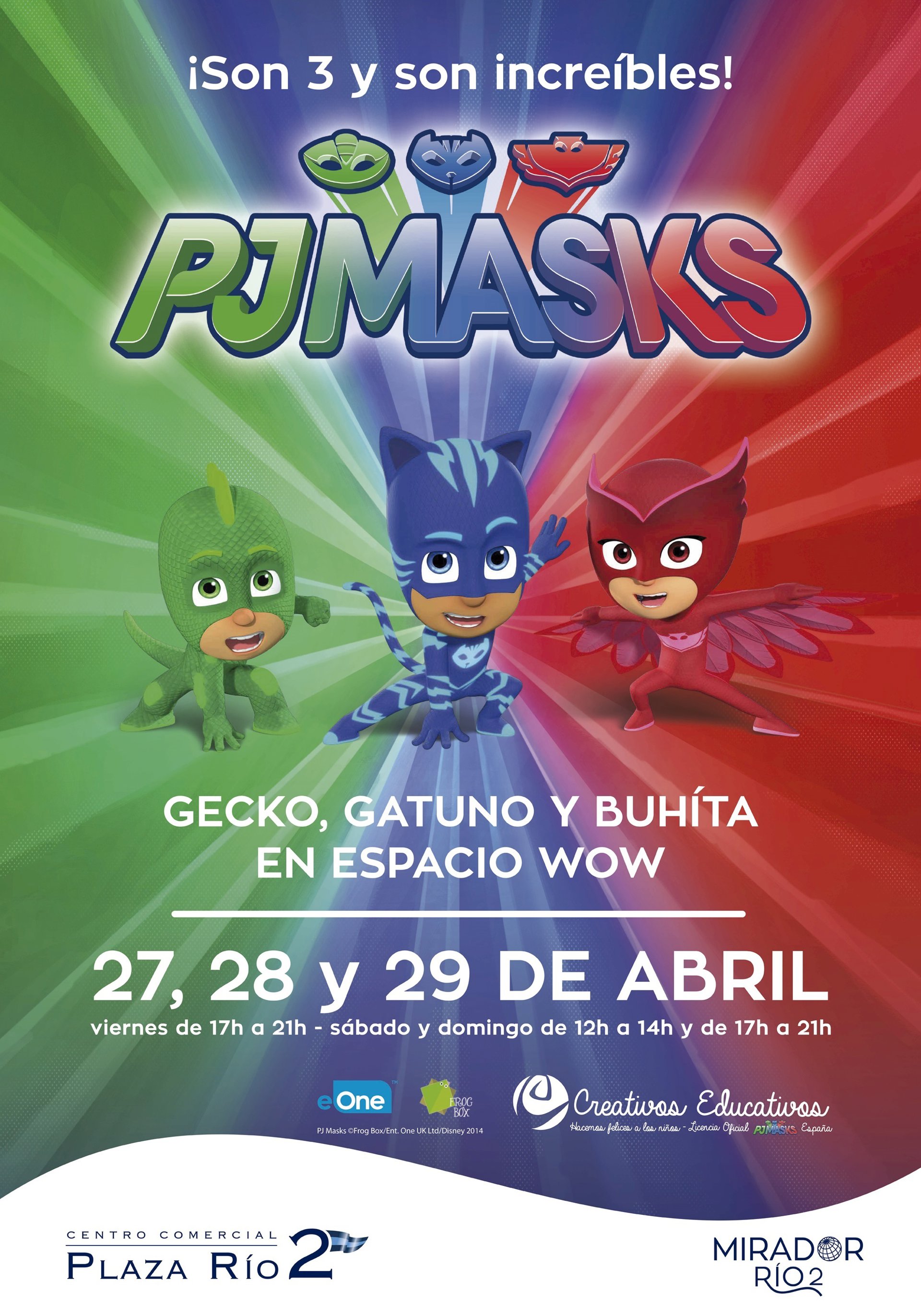 El centro comercial Plaza Rio 2 en Madrid aumenta su oferta de ocio infantil y acoge, desde este viernes y hasta este domingo, la visita en exclusiva de Pj Mask, los personajes animados favoritos de los más pequeños del hogar, quienes podrán conocerlos en primera persona en el nuevo y exclusivo Espacio Wow.