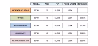 Basta entrar en su web (www.latiendadelrollo.com) para descubrir la diferencia que existe frente a sus rivales más directos. Por ejemplo, si se fija la búsqueda en los packs de 30 rollos de 80x80, la diferencia de precio con Ofitor es de un 11.22%.
