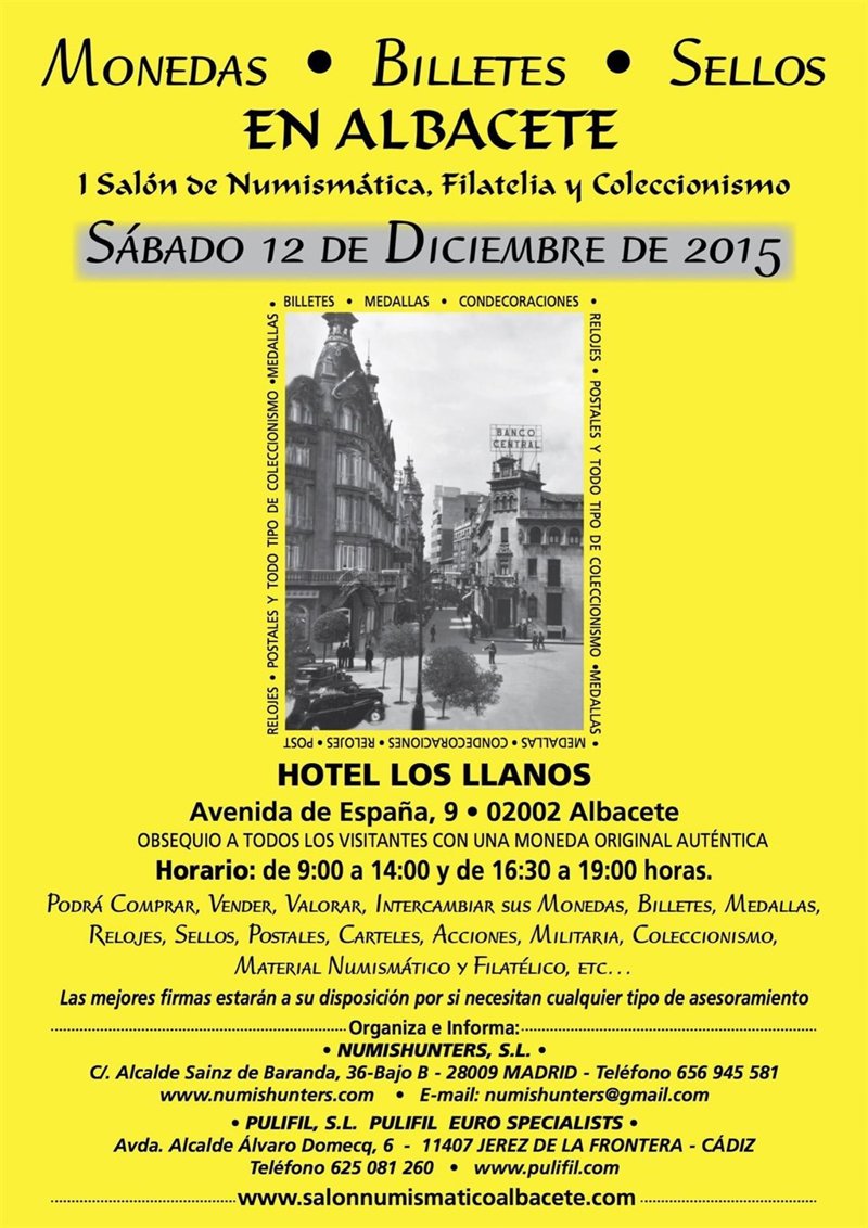 Así lo confirman los organizadores del I Salón de Numismática, Filatelia y Coleccionismo de Albacete. La empresa líder en organización de eventos numismáticos, NumisHunters, se alía con la empresa numismática PULIFIL €uro Specialists para traer a la ciudad manchega mas una veintena de profesionales del sector venidos desde diferentes puntos del territorio nacional.