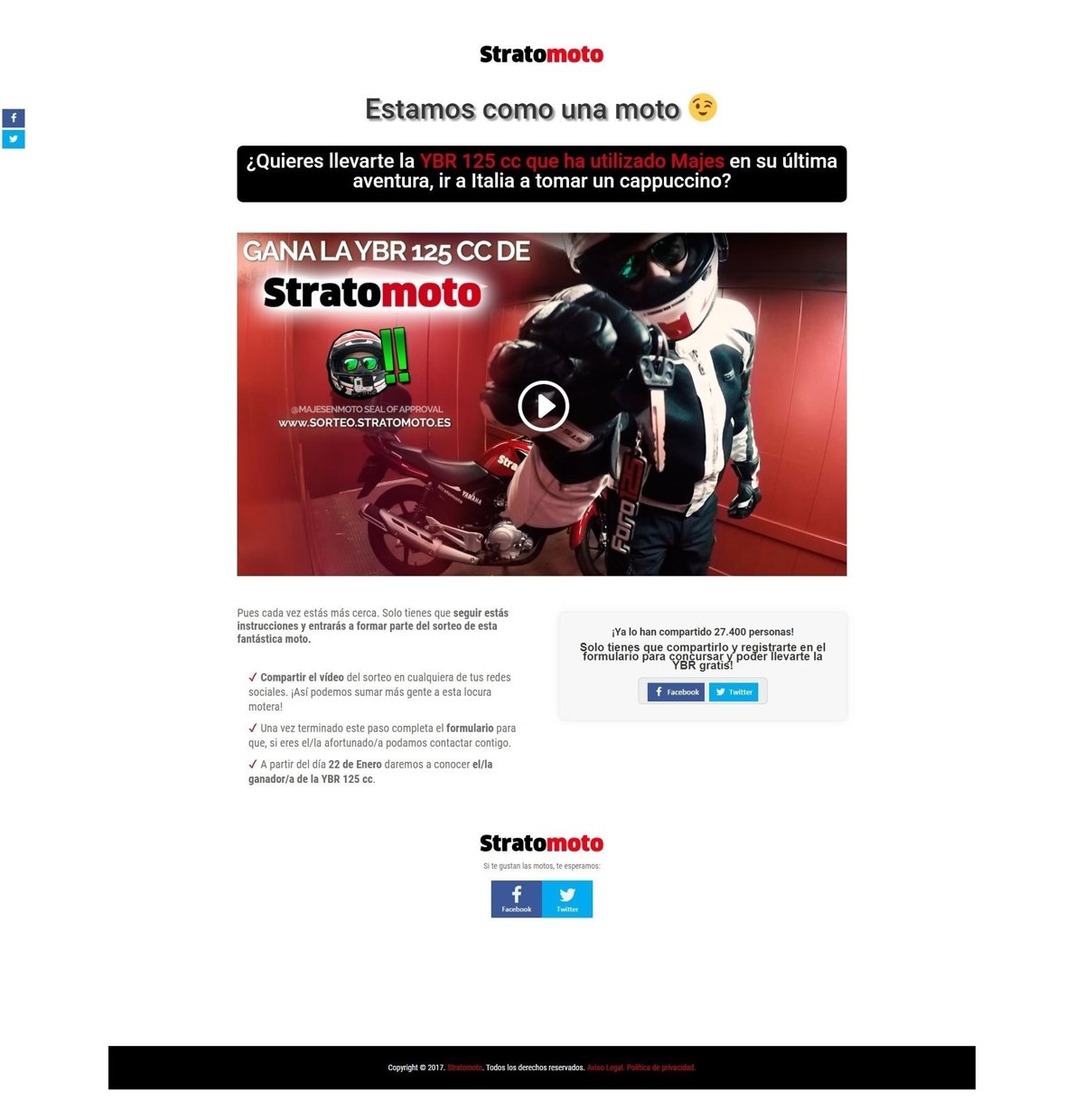 Entrar en: Sorteo.stratomoto.es. Las Inscripciones están abiertas hasta el 22 de enero de 2018. La participación solo será válida si se realiza desde la página del sorteo.