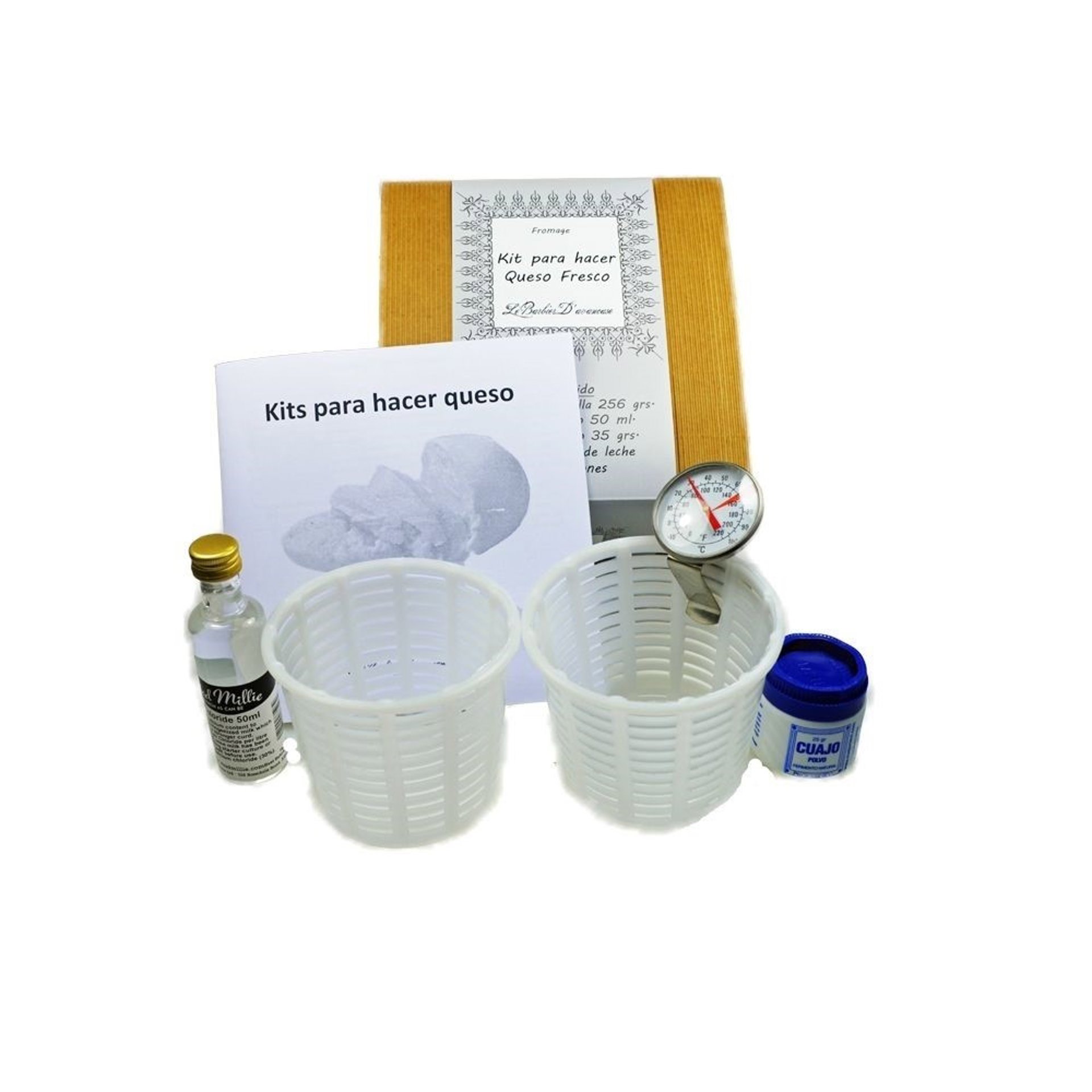 En esta selección se cuenta con las prensas y kits de queso de la marca Le Barbier D’avancase y de la marca Mad Millie. Esta oferta se complementa con un servicio de asesoramiento y con todo tipo de productos para la elaboración del queso: cuajo, cloruro cálcico, fermentos lácticos, cultivos, ceniza, tela quesera, moldes, fresqueras, termómetros o incluso leche entera de cabra y de oveja en polvo.