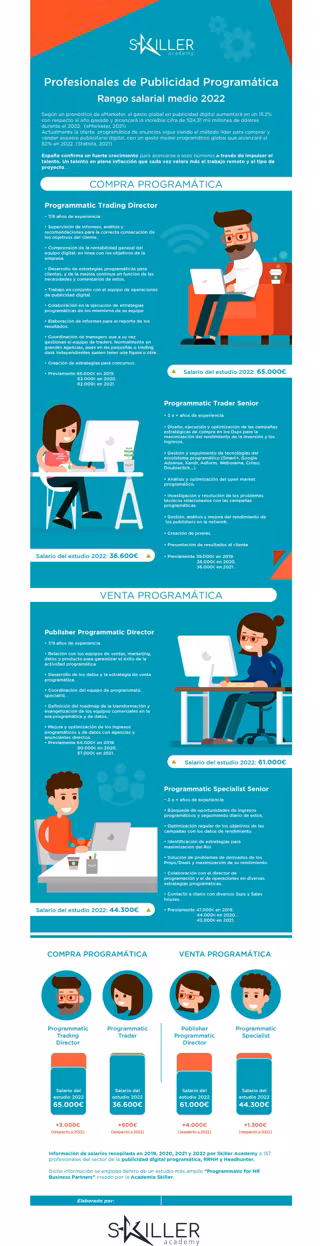 Skiller Academy presenta la infografía 2022 por tercer año. Esta información facilita a las empresas determinar el rango salarial de sus puestos vacantes en publicidad programática