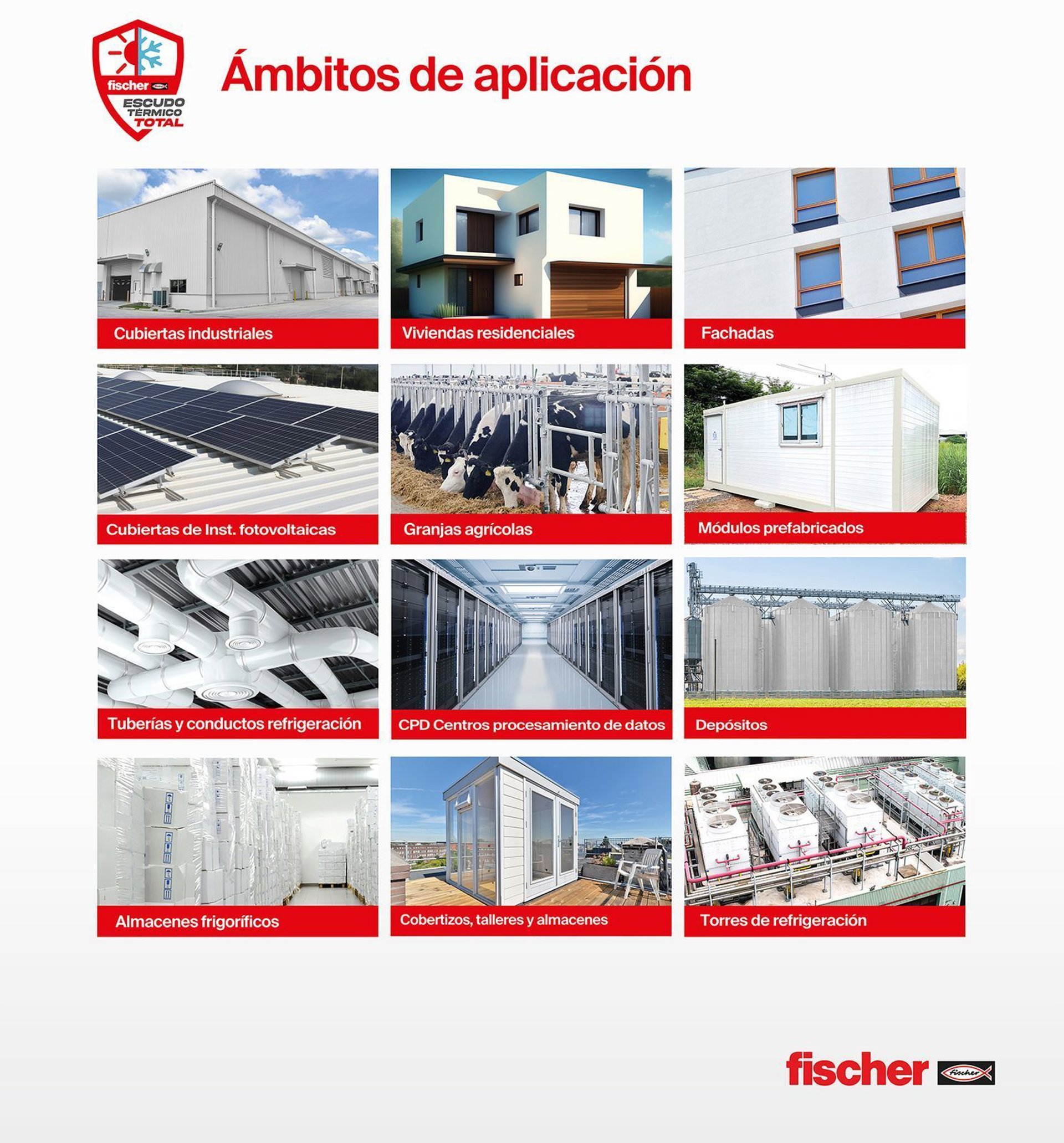 • Es aplicable en entornos residenciales e industriales como cubiertas de naves, granjas agrícolas para el cuidado del bienestar animal, viviendas, torres de refrigeración y centros de procesamiento de datos, entre muchos usos.