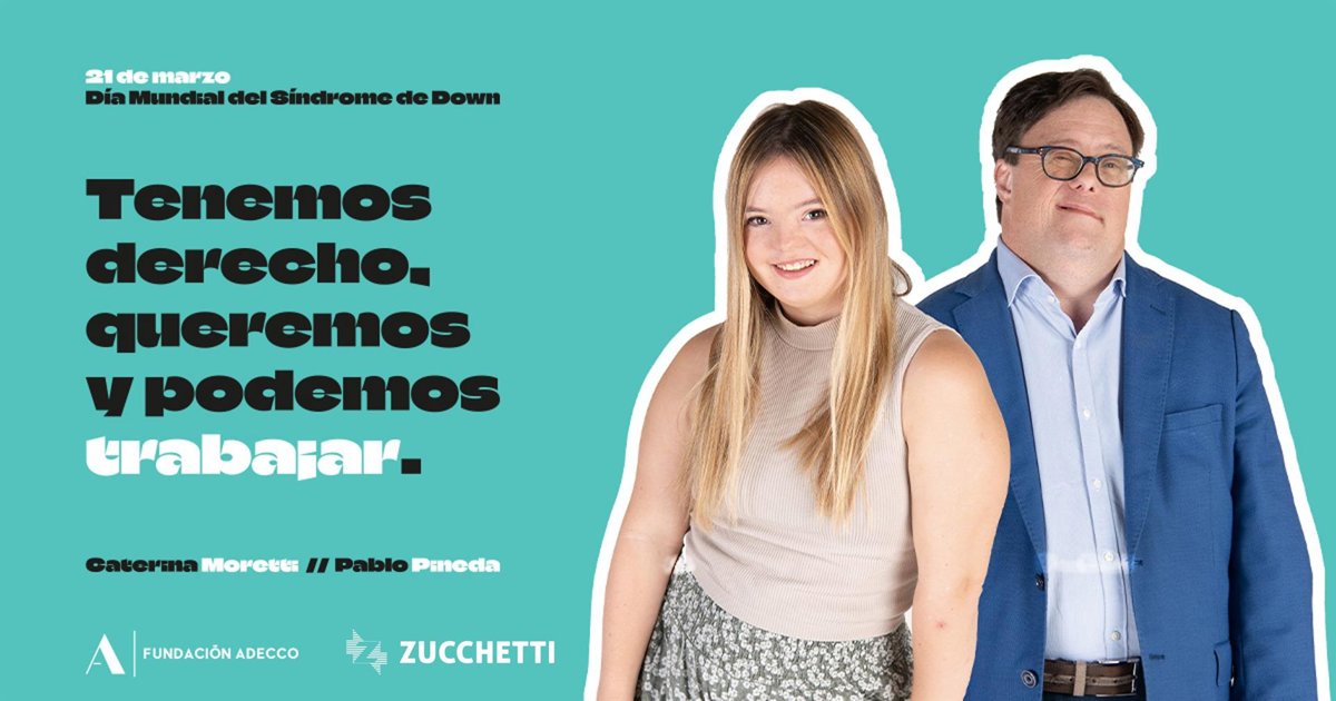 Con motivo del Día Mundial del Síndrome de Down, la Fundación Adecco ha lanzado una campaña para trasladar a la sociedad que las personas con discapacidad intelectual tienen derecho, pueden y quieren trabajar. Esta campaña está protagonizada por Pablo Pineda y Caterina Moretti, dos referentes de este tipo de discapacidad que tienen más de 35.000 personas en España. "Queremos lanzar un mensaje muy fácil de entender, pero que cuesta mucho a la sociedad: tenemos derecho a trabajar y podemos hacerlo igual que cualquier otra persona", comenta Pablo Pineda.