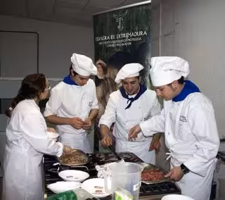 CÁCERES, 8 DE ABRIL DE 2010 (EUROPA PRESS).- El Consejo Regulador de la Indicación Geográfica Protegida Ternera de Extremadura ha enseñado hoy a casi un centenar de alumnos universitarios cómo valorar diferentes tipos de carne de vacuno según su grado de maduración. Esta clase ha tenido lugar hoy en el marco de las Jornadas Profesionales que la Escuela de Hostelería de Cáceres ha organizado en el Salón de Actos del I.E.S. Universidad Laboral de Cáceres como aperitivo al comienzo del certamen Extregusta 2010.