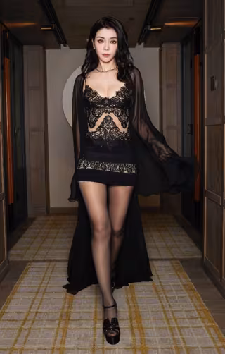Tia Lee con un vestido de encaje entallado. - Redhill Asia