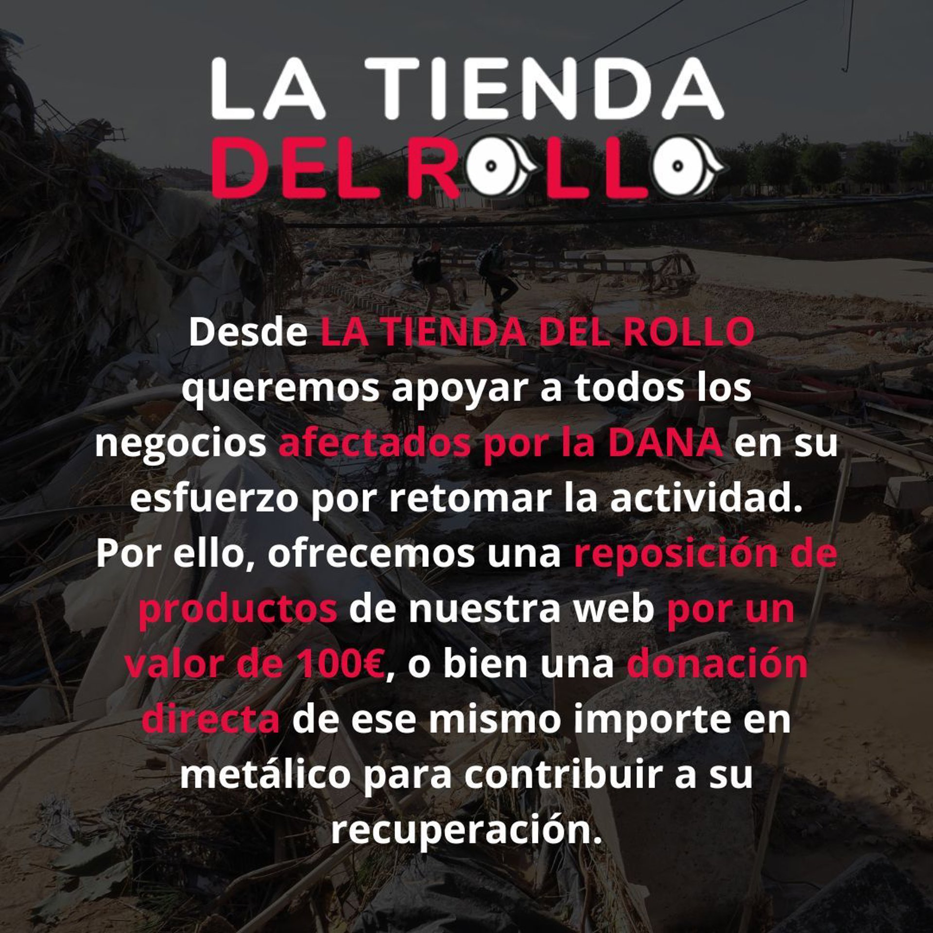 2. Apoyo de La Tienda del Rollo a negocios afectados: Conscientes del impacto económico que este desastre ha provocado en muchos negocios cuya actividad se ha visto interrumpida, latiendadelrollo.com brindará una reposición de productos de la tienda online por un valor de 100 €, o bien una donación directa de ese mismo importe en metálico, para ayudar a estos negocios a retomar sus actividades y contribuir así a su recuperación.